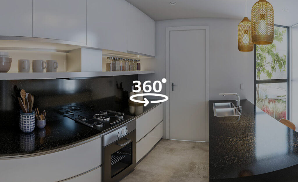 Los muebles bajo mesada y alacenas serán fabricados en melamina sobre mdf símil madera marca Egger perfect sense/ línea touch o feel Wood o similar con herrajes Hafele con cierre suave. La mesada será de granito negro de brasil leather. La barra de la cocina estará revestida con Purastone. Los muebles de lavadero serán de melamina marca Egger o similar. Tanto cocina como lavadero llevarán zócalo de aluminio.